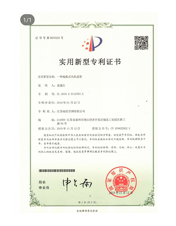 實(shí)用新型專利 專利號(hào):ZL 2019 2 0116725.5
